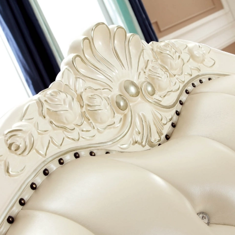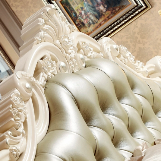يعرض اللوح الأمامي الثاني الانتهاء من الجلد البيج ، يضم تصميمًا معنقدًا ينضح بالتطور. المنحوتات المتقنة - أنماط الفضلات والورود الحساسة - الحرف الحرفية الحرفية. يقع ضد ديكور الجدار المزخرف ، ويحول أي مساحة إلى تراجع ملكي ، وهو مثالي لأولئك الذين يتوقون إلى العظمة.