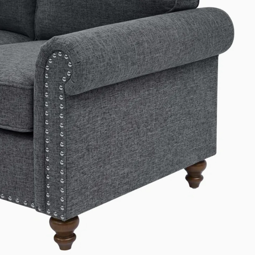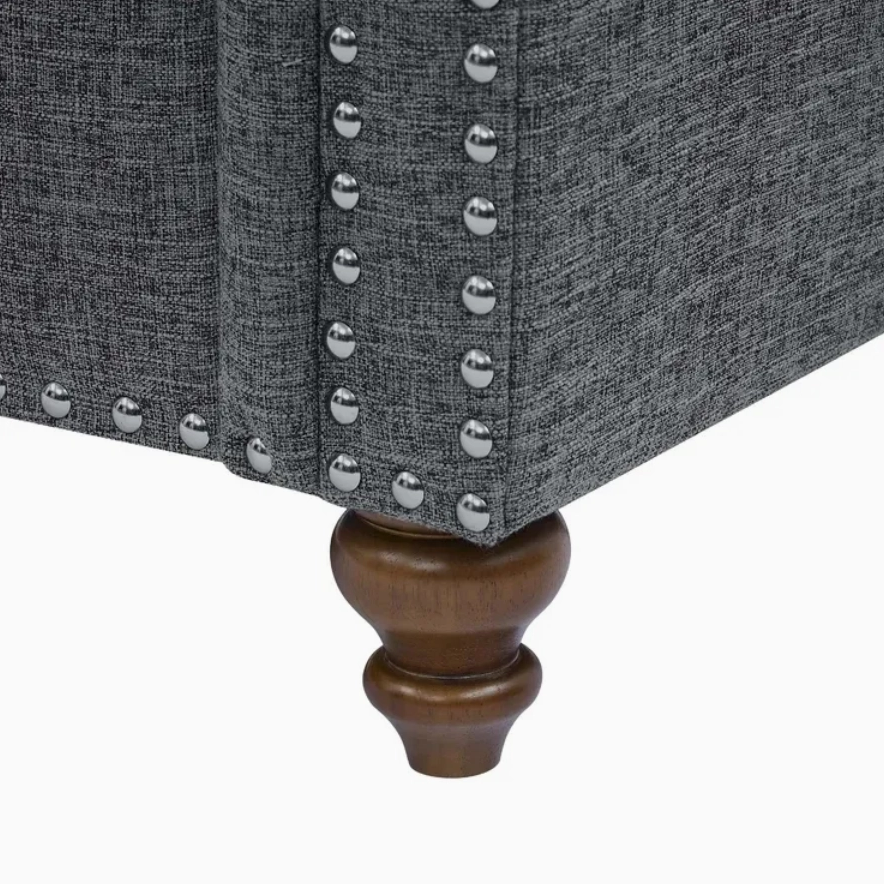 ارفع أجواء فندقك مع أريكتنا المخصصة المصممة بدقة ، مصممة لدمج جماليات الخالدة مع راحة استثنائية. تعرض الأريكة تنجيدًا رماديًا متطورًا ، حيث ينضح الفخامة المناسبة لمختلف موضوعات الفنادق - من الصالات الكلاسيكية إلى الأجنحة الحديثة. تزين حواف رأس الأظافر الدقيقة مساند القاعدة والقاعدة ، مضيفًا لمسة راقية ، في حين أن مساند الذراعين المنحنيين والساقين الخشبيين تنفث سحرًا عتيقًا ، مما يخلق نقطة محورية تؤسر الضيوف.
